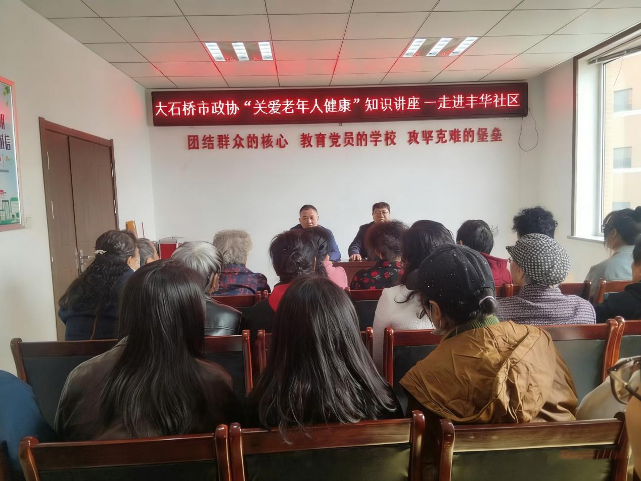 为深化 “一委一品” 履职特色建设,推动品牌化履职走深走实,3 月 26 日,大石桥市政协社会和法治委员会委员、医疗卫生界别委员分别在负责人崔彬、白锡明的带领下,以 “法治护航·健康同行” 品牌项目为抓手,共同走进丰华社区,开展中老年健康知识讲座,以实际行动践行委员为民情怀与社会担当。