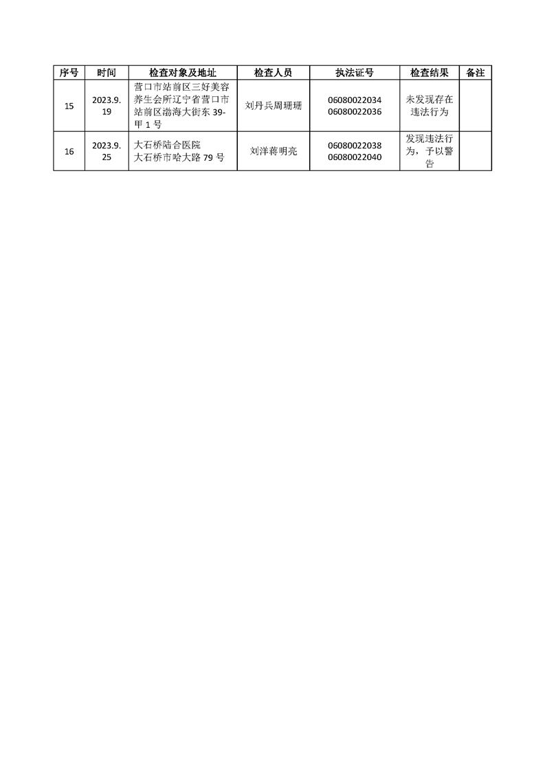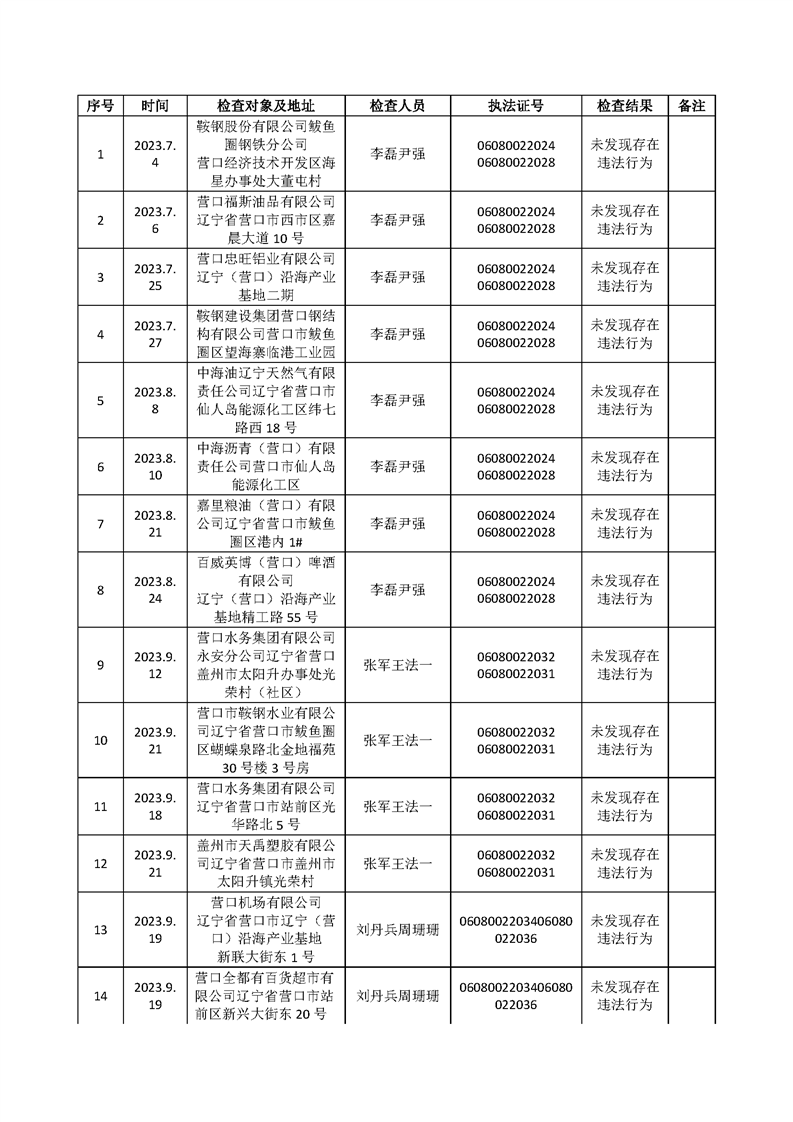 2023年涉企行政执法检查结果公示表(第三季度)