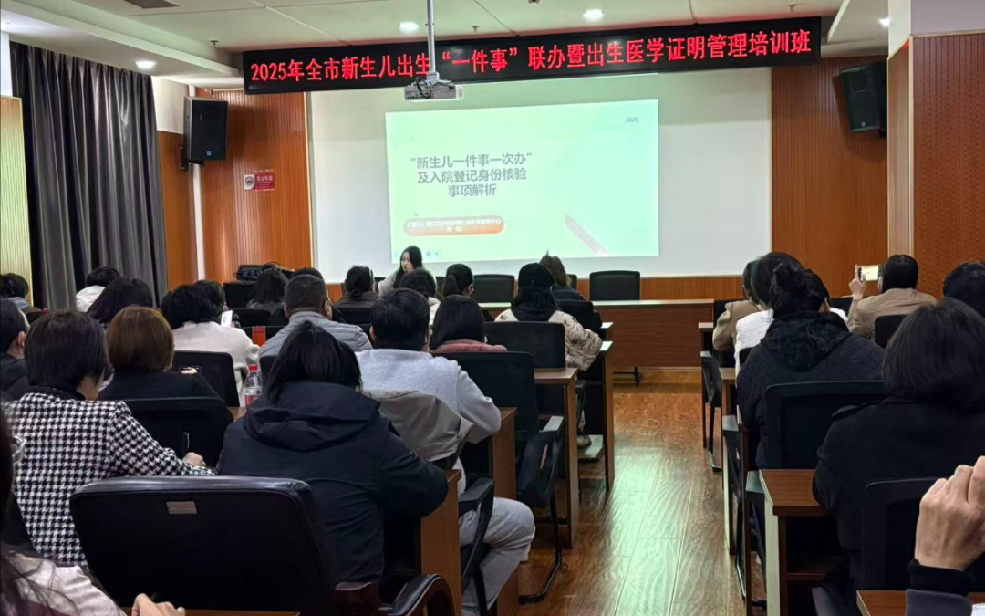 为进一步提升新生儿出生“一件事”联办服务效能与出生医学证明管理规范化水平,近日,我市卫生健康委主办、市妇幼保健计划生育服务中心承办的2025年全市新生儿出生“一件事”联办暨出生医学证明管理培训班顺利召开。全市各县区卫健局妇幼科长、妇幼保健机构分管领导、出生医学证明管理及签发骨干、助产机构产科主任等共计70余人参会。