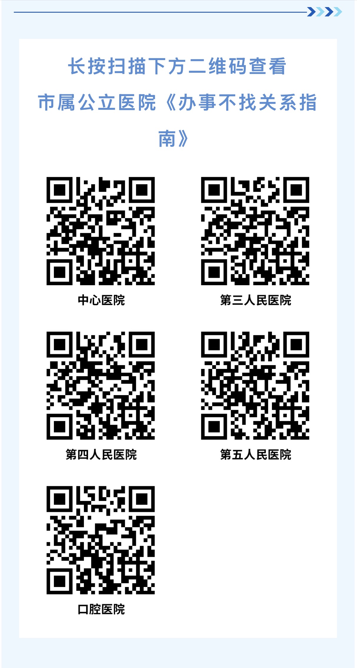 为切实提升人民群众就医体验,持续优化营商环境,便于群众明晰就医流程,营口市卫生健康委员会牵头组织市属各公立医院修订完善《医疗机构办事不找关系指南》。《指南》聚焦挂号就诊、检查化验、住院服务及投诉举报等就医环节,进一步充实内容、细化指引,着力提升指南的实用性、便捷性与时效性。为各项办事事项生成专属查询二维码,通过 “扫码即解决” 的便捷模式,推动实现就医服务更优质、办事效率更高效、群众体验更便捷的工作目标。