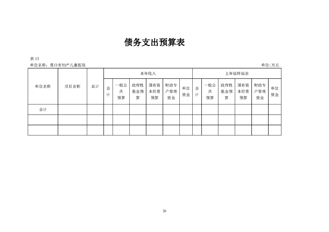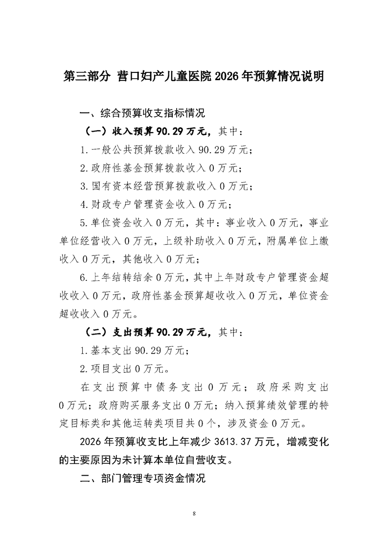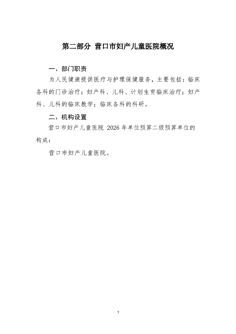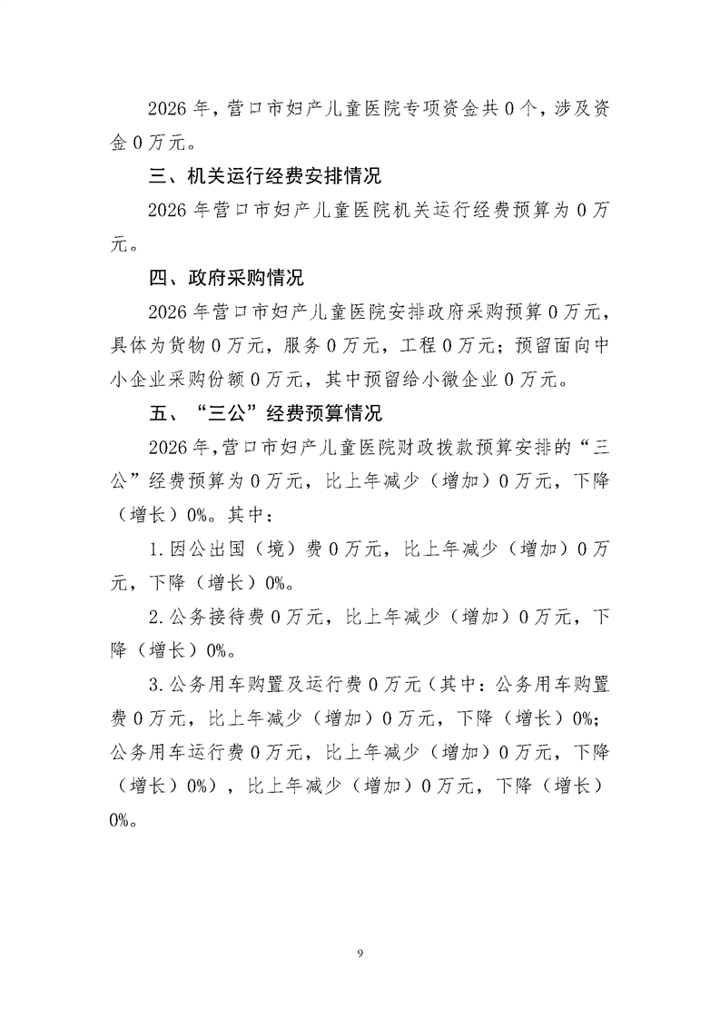营口市妇产儿童医院2026年度预算公开