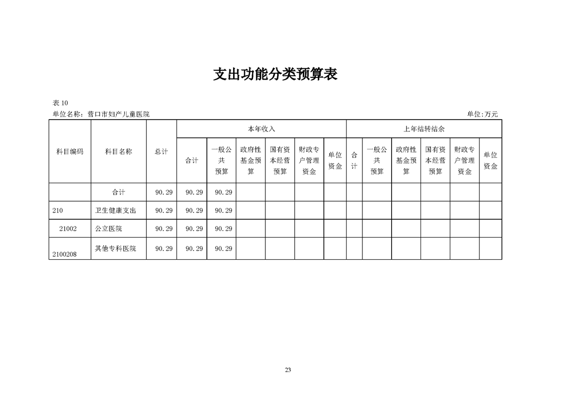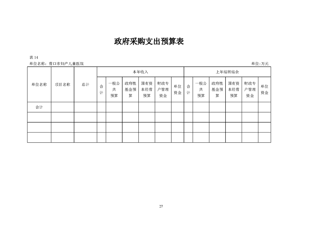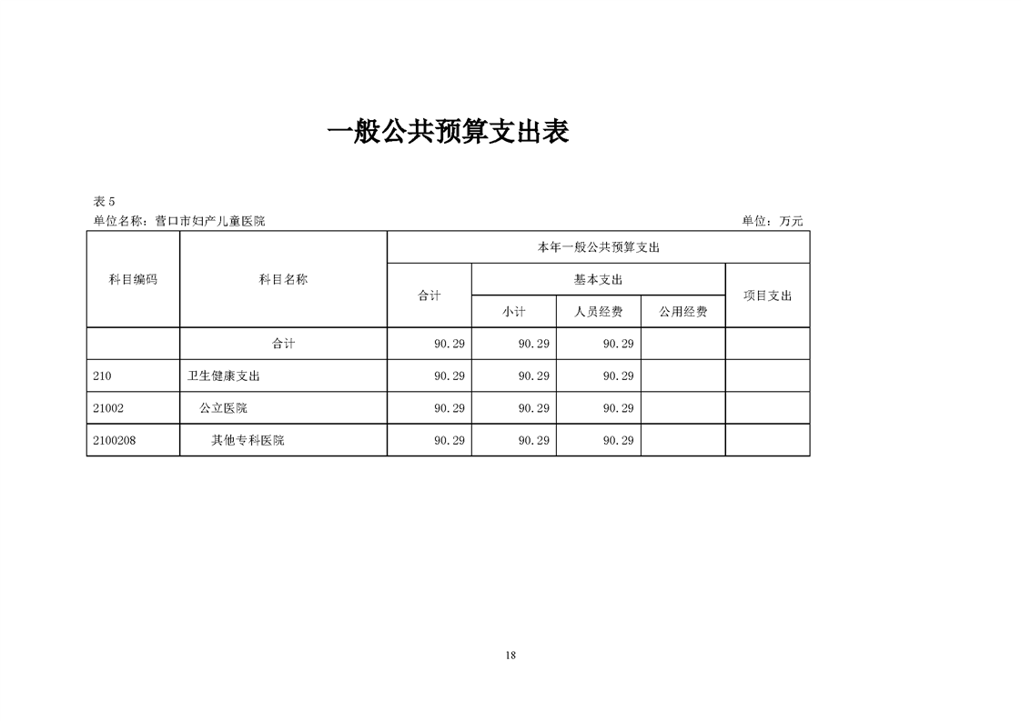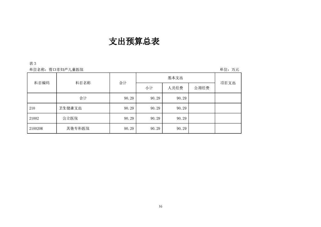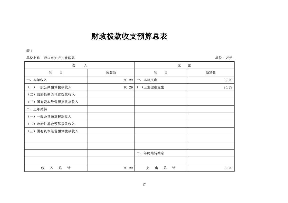 营口市妇产儿童医院2026年度预算公开
