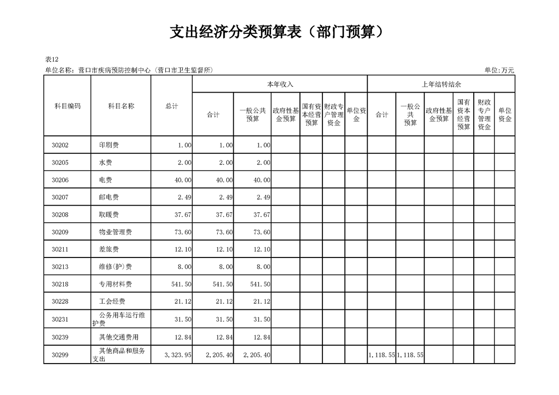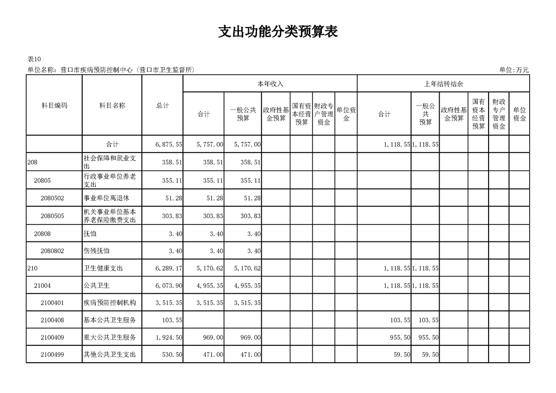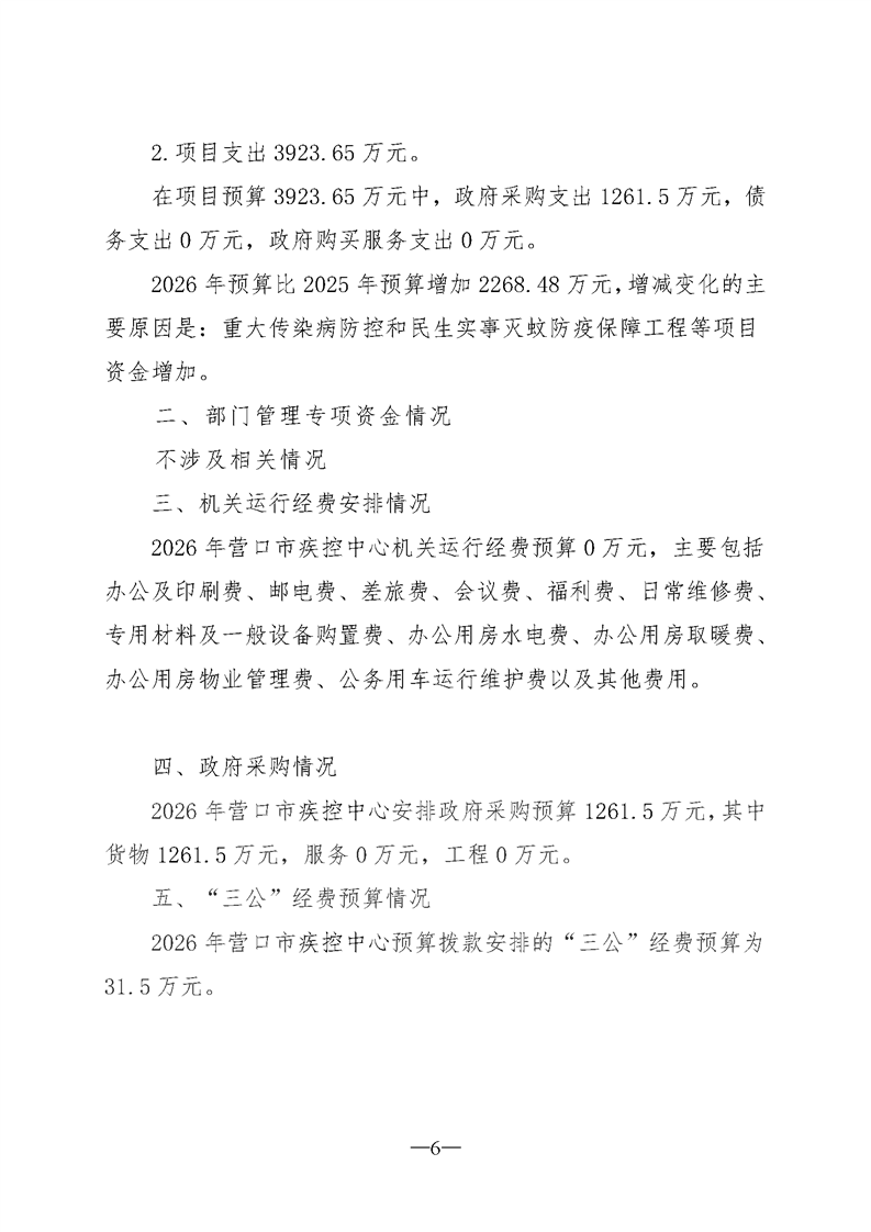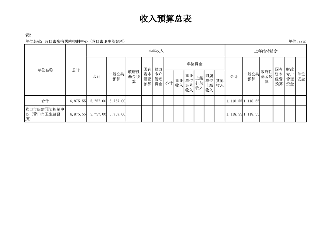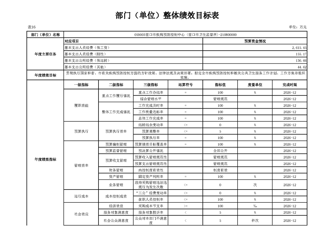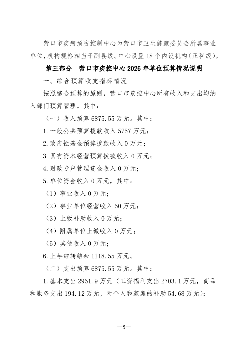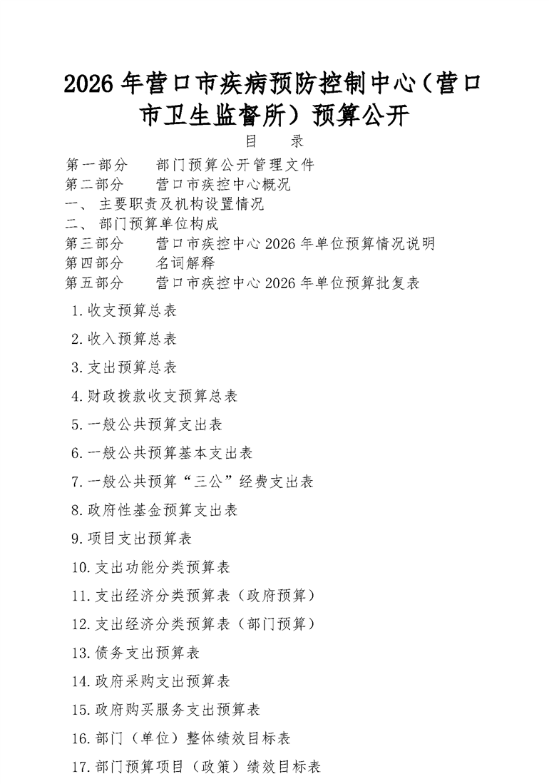 2026 年营口市疾病预防控制中心(营口 市卫生监督所)预算公开