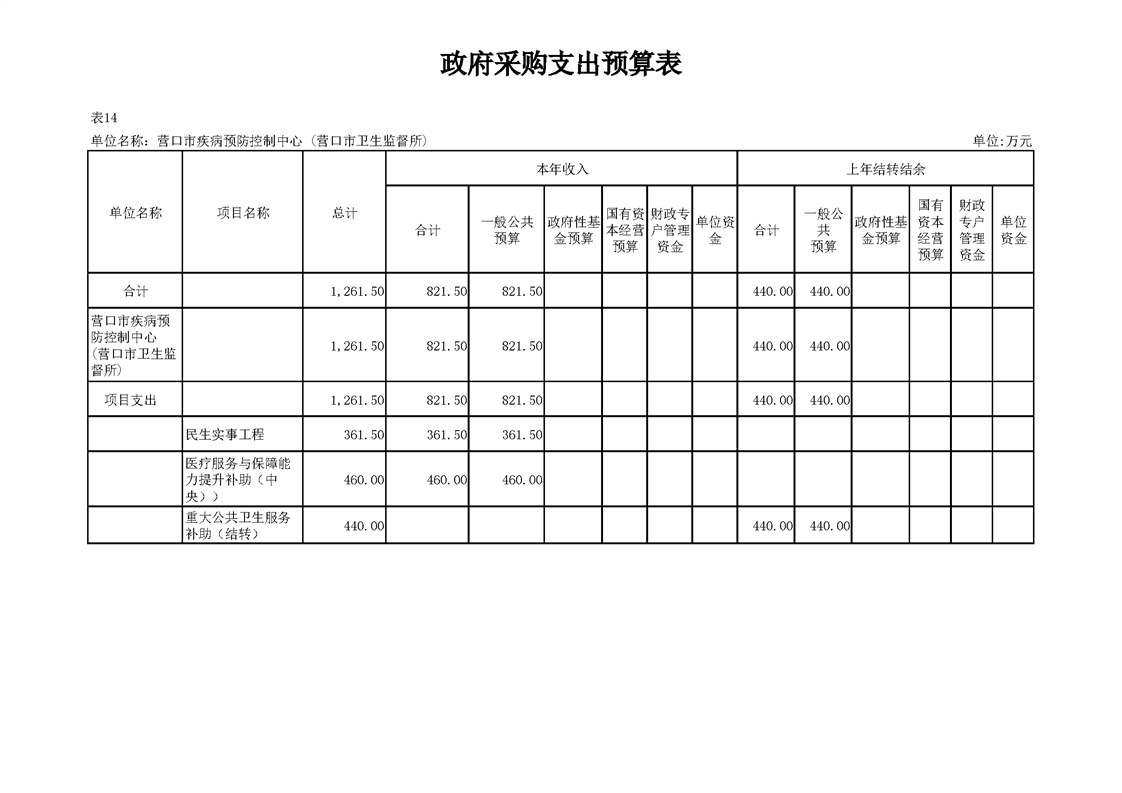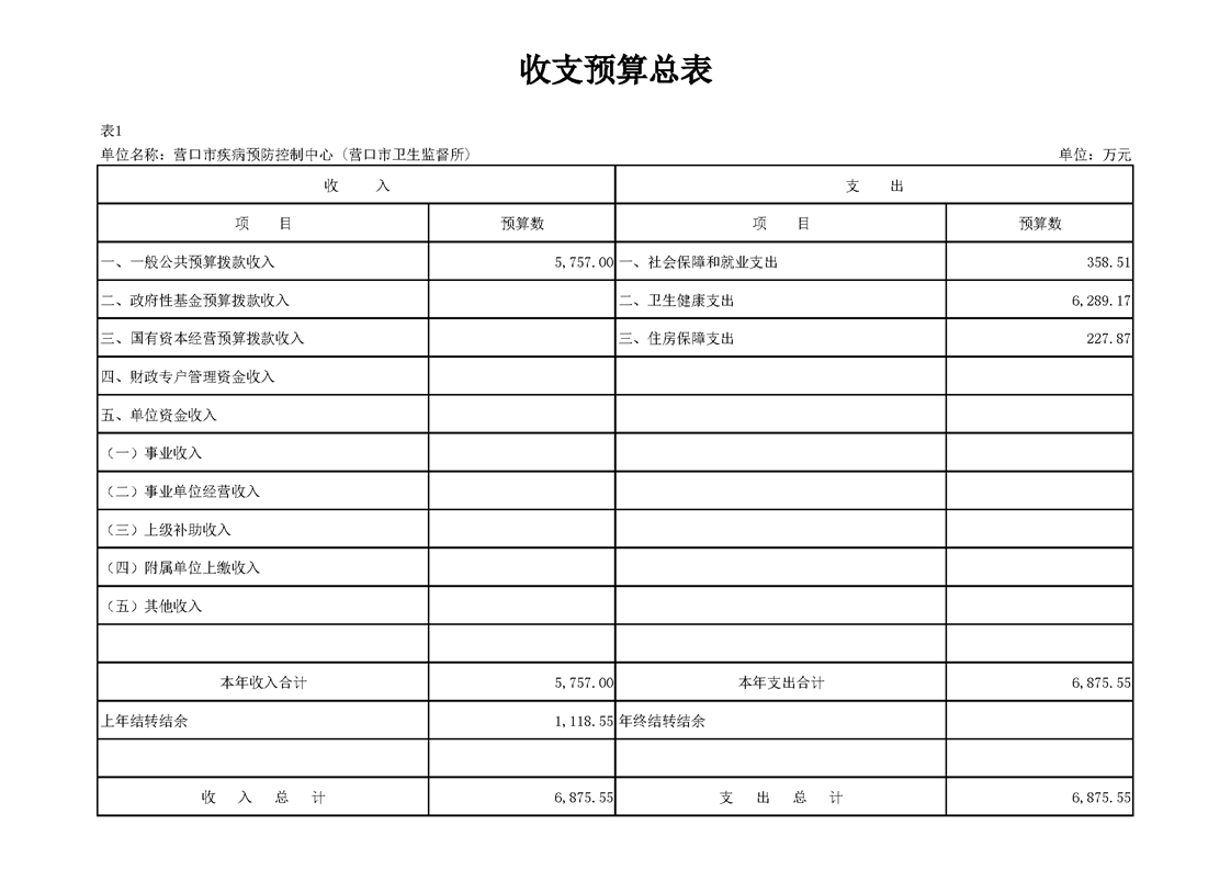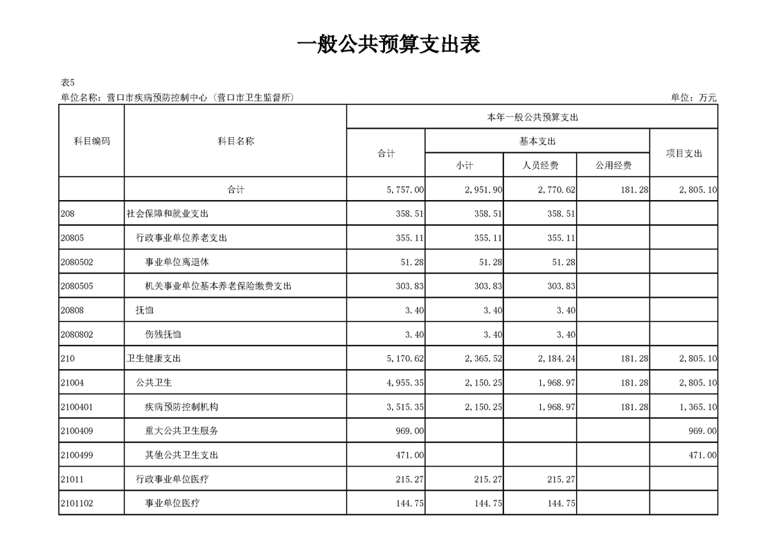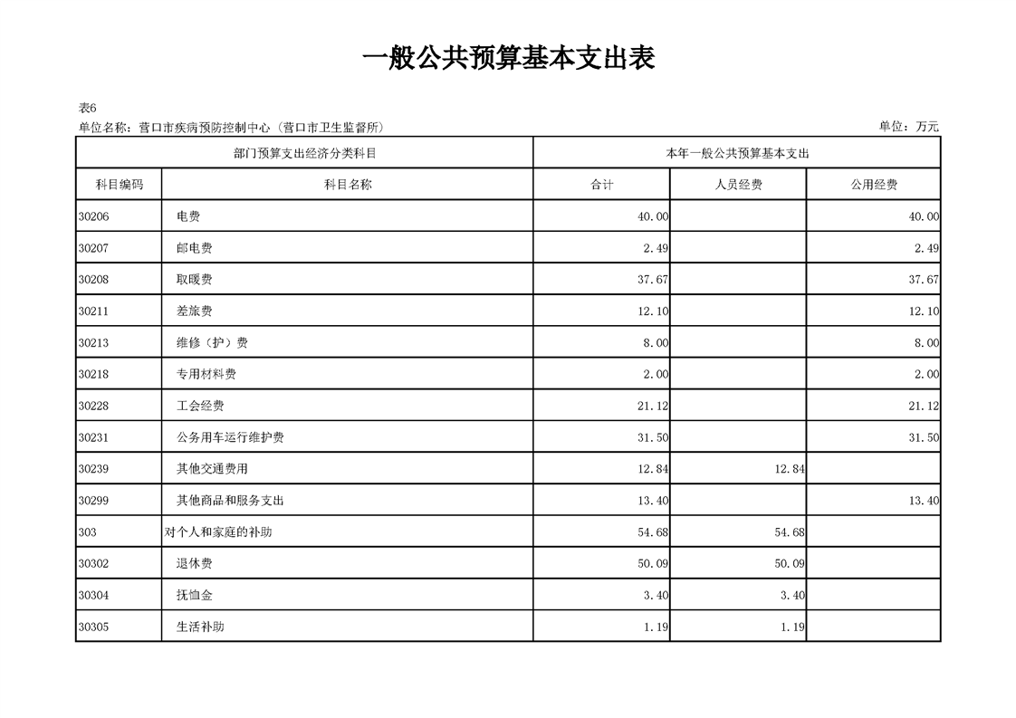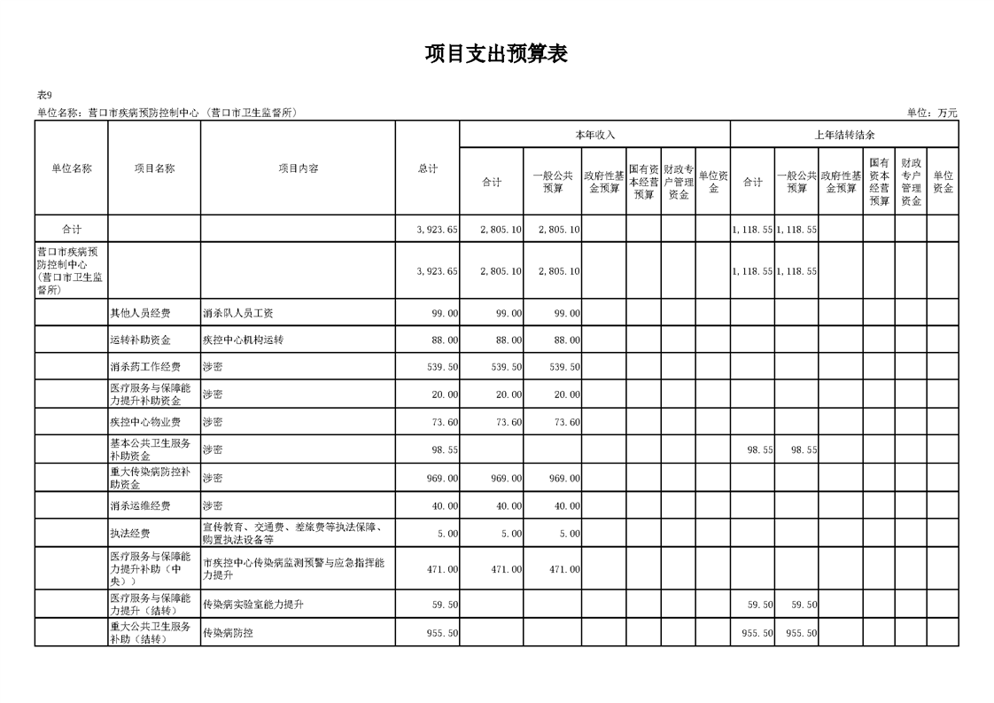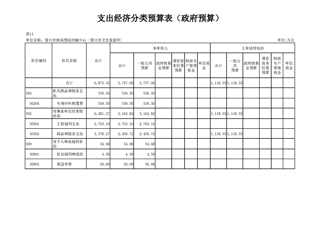 2026 年营口市疾病预防控制中心(营口 市卫生监督所)预算公开